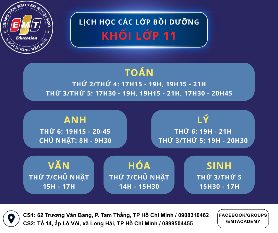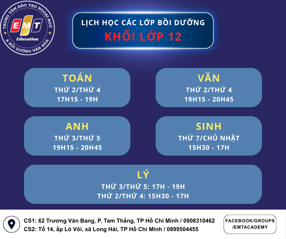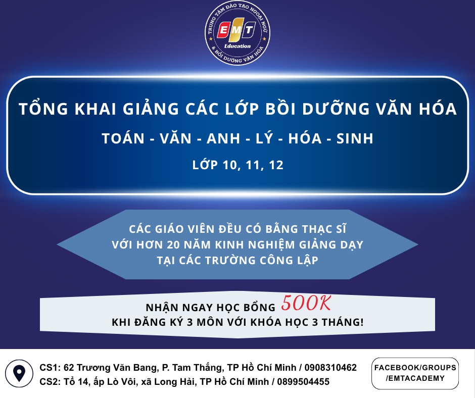 THÔNG BÁO KHAI GIẢNG LỚP BỒI DƯỠNG VĂN HÓA TẠI EMT ACADEMY VŨNG TÀU & LONG HẢI
