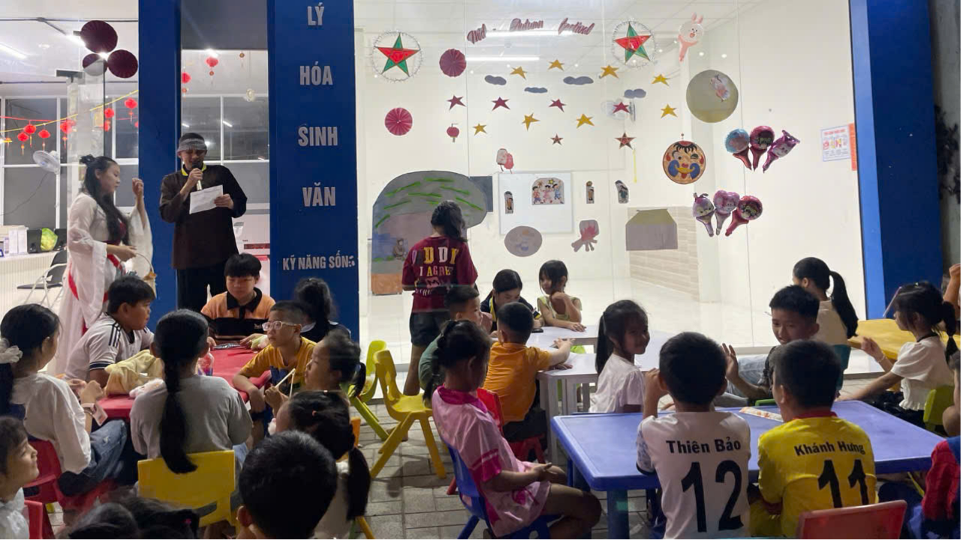 Các em tham gia chụp ảnh check-in cùng Chú Cuội và Chị Hằng tại EMT LONG HẢI
