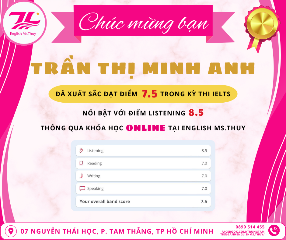 EMT ENGLISH ONLINE tự hào đã đào tạo nhiều học viên xuất sắc, chinh phục thành tích cao trong các kỳ thi tiếng Anh quốc tế chỉ qua những buổi học trực tuyến linh hoạt, khẳng định sức mạnh của giáo dục mọi lúc mọi nơi.