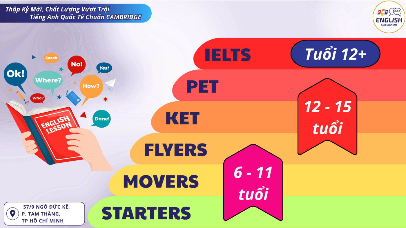 Dành cho các em từ 12 đến 15 tuổi, với mục tiêu chuẩn bị cho các kỳ thi tiếng Anh quan trọng và nâng cao trình độ tiếng Anh toàn diện.