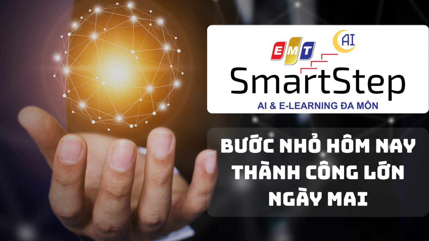 EMT SmartStep mang đến nền tảng học tập thông minh đa môn học (Toán, Văn, Anh, Lý, Hóa, Sinh…) cho mọi lứa tuổi, với lộ trình cá nhân hóa bằng AI, bài giảng chất lượng cao và bài tập tương tác tức thì. Chỉ cần một chiếc điện thoại hoặc máy tính có internet, bạn có thể học mọi lúc, mọi nơi, theo tốc độ riêng và nhu cầu riêng của mình – biến việc học từ nghĩa vụ thành thói quen bền vững, giúp bạn tự tin chinh phục mọi kỳ thi và phát triển suốt đời.